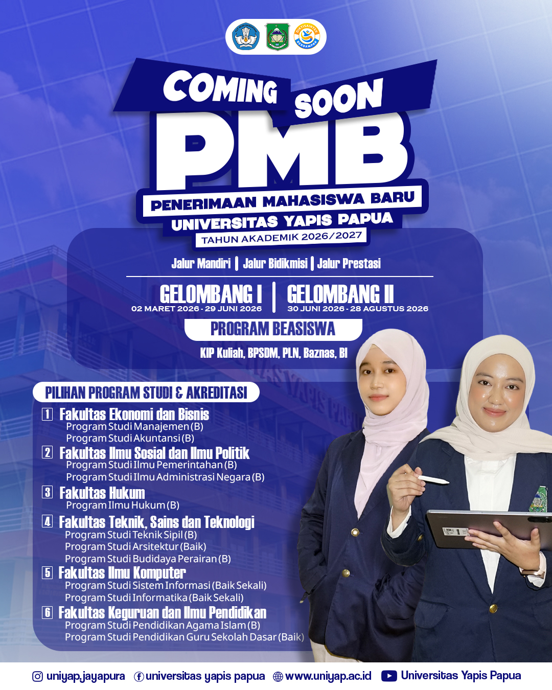 Waktunya meraih masa depan cerahmu di Universitas Yapis Papua! Pendaftaran Mahasiswa Baru Tahun Akademik 2026/2027 telah dibuka!